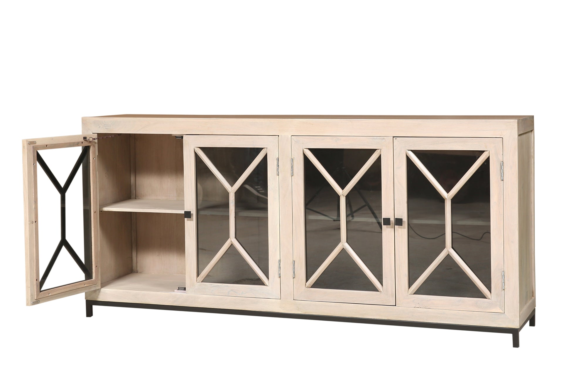 Candace 82" Smoked Glass 4 Door Sideboard - New White Wash