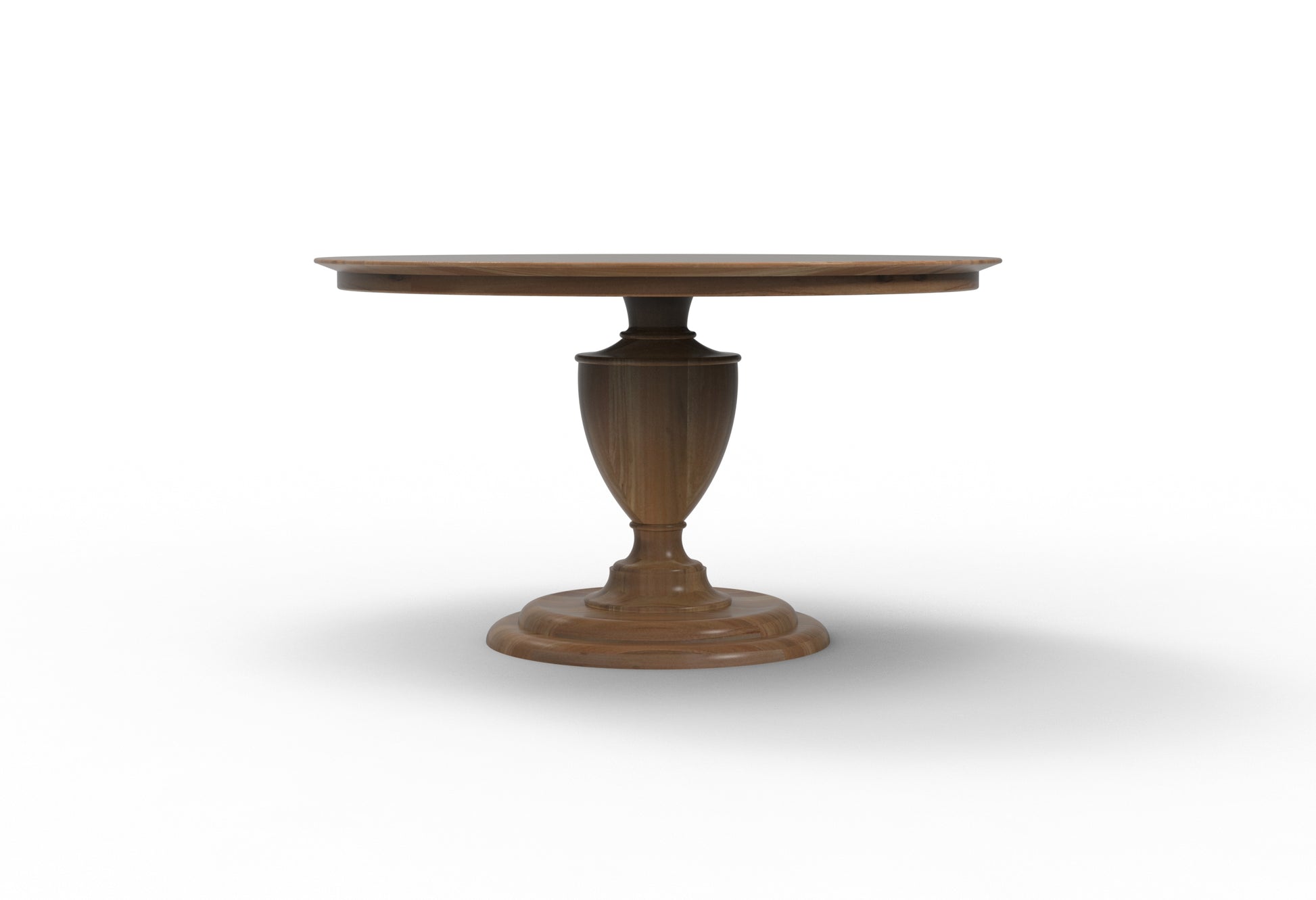 Manufactured from solid acacia hardwood. Utilizes hand-carved, solid acacia wood pedestal base for beauty & space efficiency.