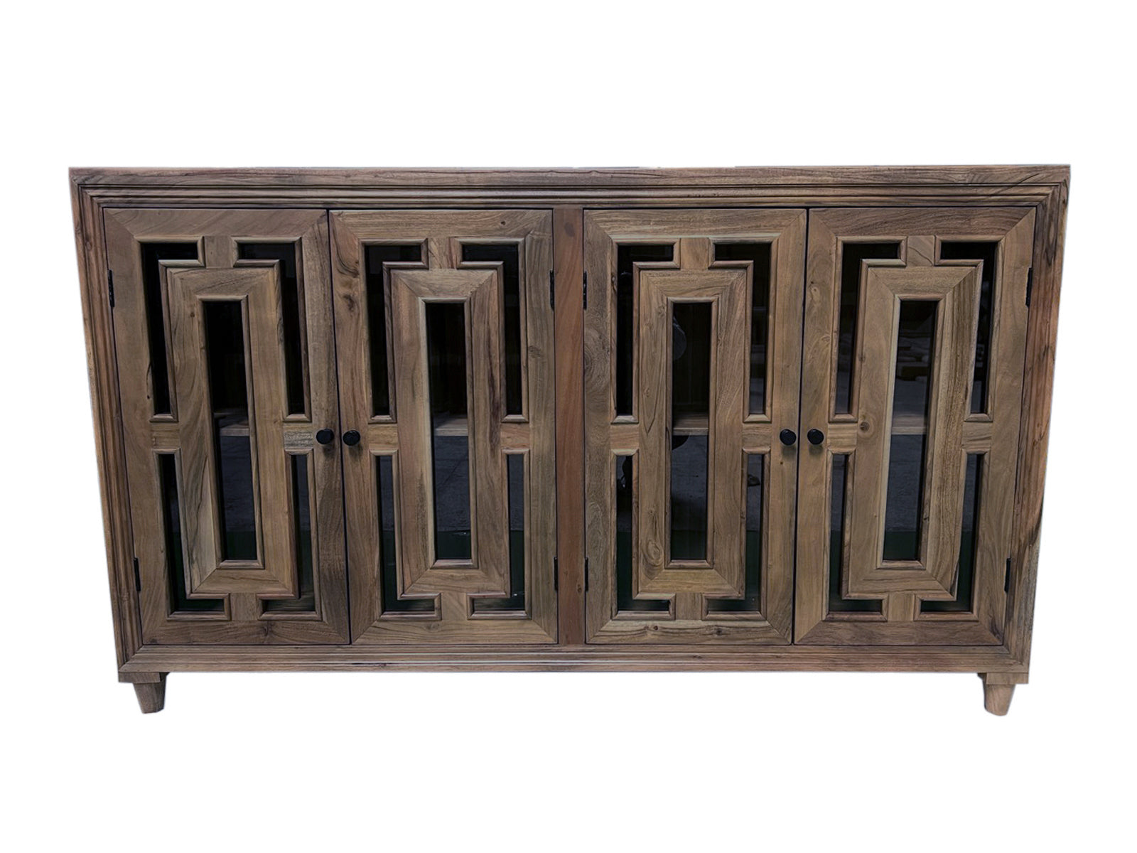 Dominic 71" Acacia 4 Door Glass Front Sideboard - Natural + Smoke